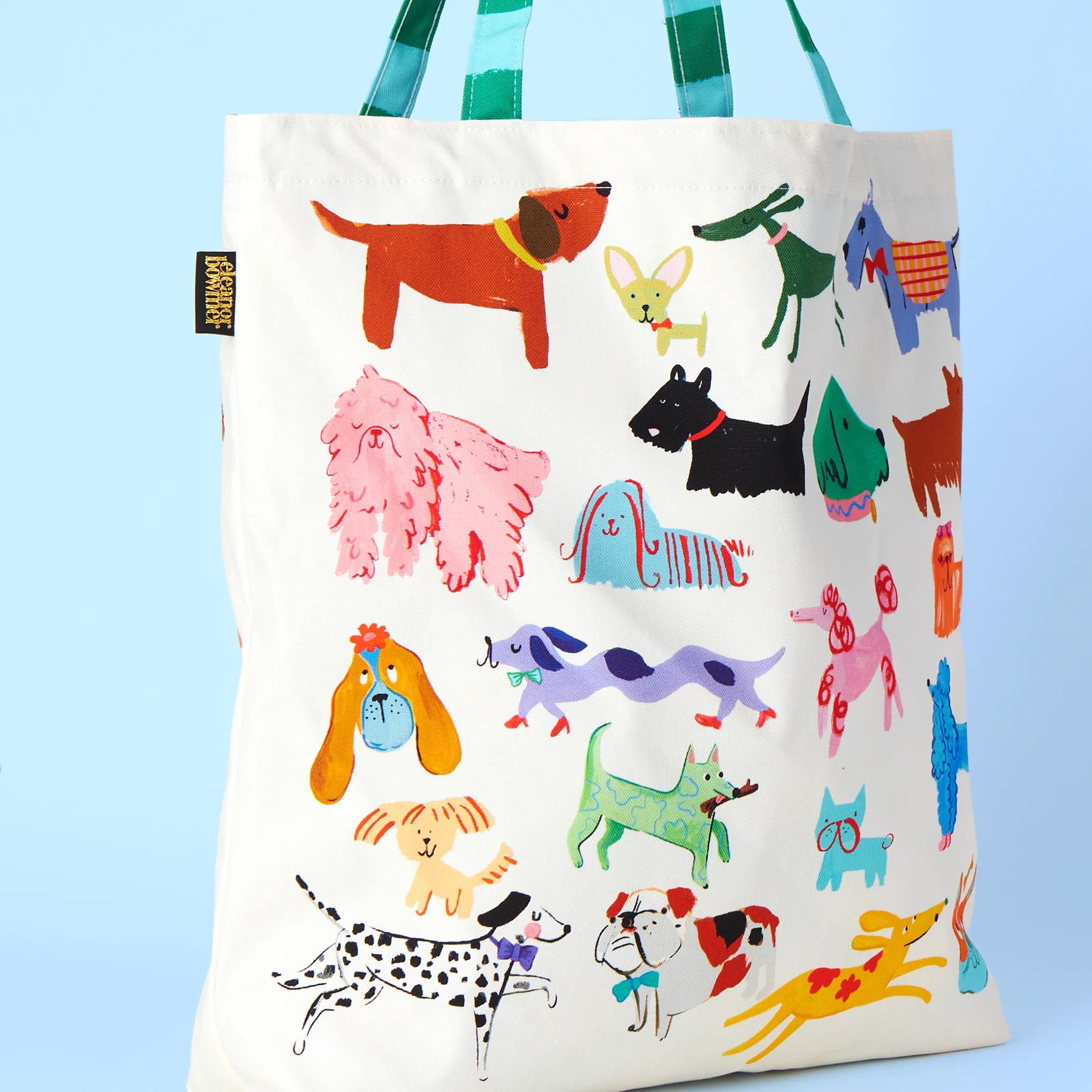 Carry your essentials in style with our Dog Club Tote Bag. Cream with cute dog illustrations, it features strong striped handles for durability. The inside boasts a pink and blue star pattern, while the water-resistant lining keeps your items safe. Ideal for dog lovers on the go.