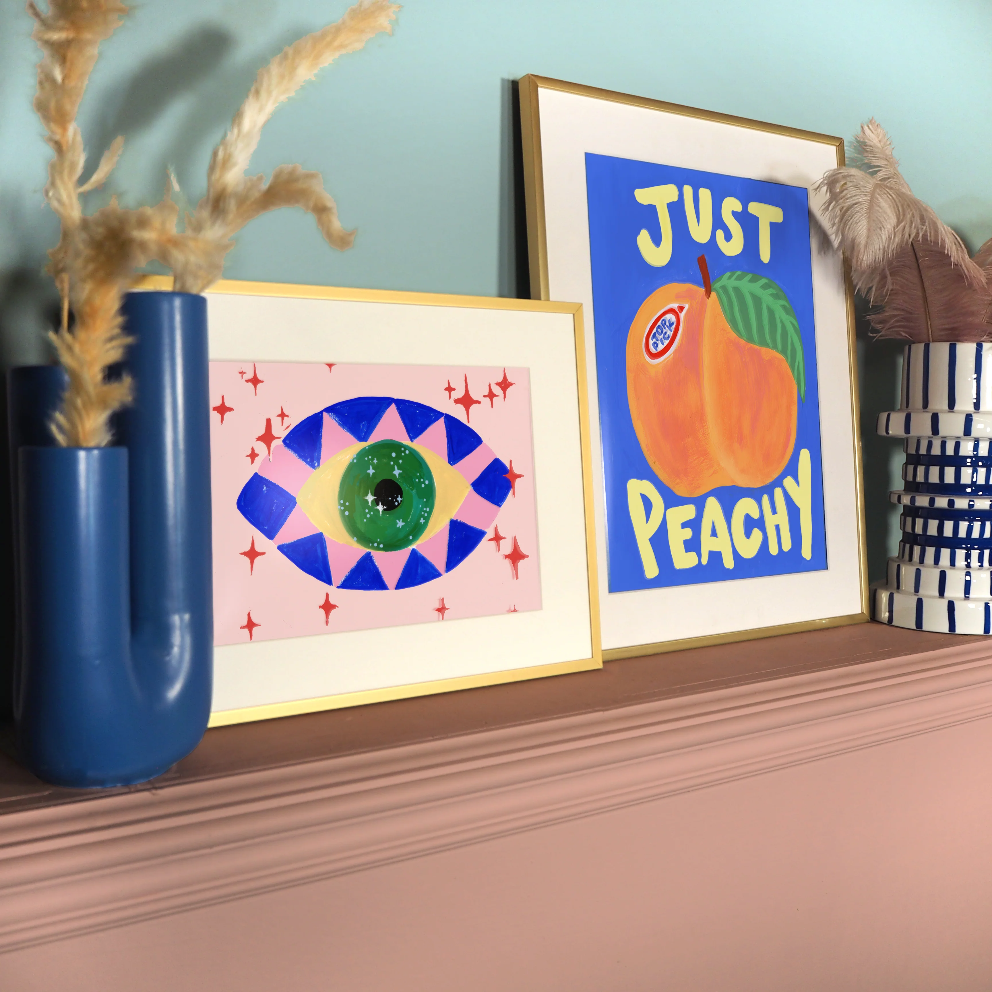 Our 'Just Peachy' print features a lovely hand painted peach on a sky blue background. This would look great with our 'Bigger Fish To Fry' and 'The Way You Speak To Yourself' prints.