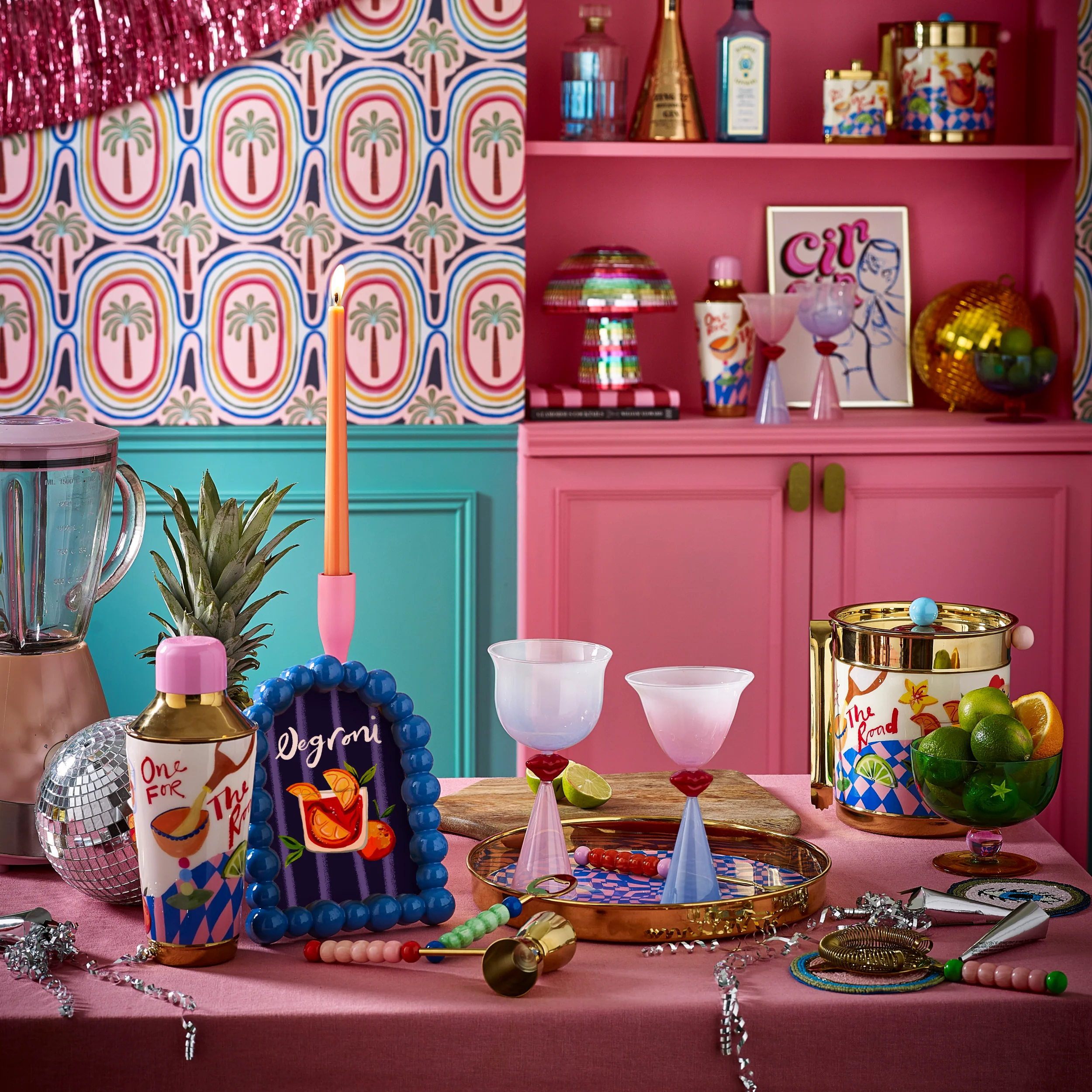 Add glamour to your spritz in our Lips Tinted Cocktail Glasses – a hand-blown, hand-painted set of two with ombre pink and blue and a pop of red lips on each stem. Beautifully boxed for gorgeous gifting, these statement glasses are made to impress, whether you're mixing martinis or dressing up your drinks trolley. A flirty little upgrade for cocktail hour, and a perfect match to our Lips Wine Glasses.