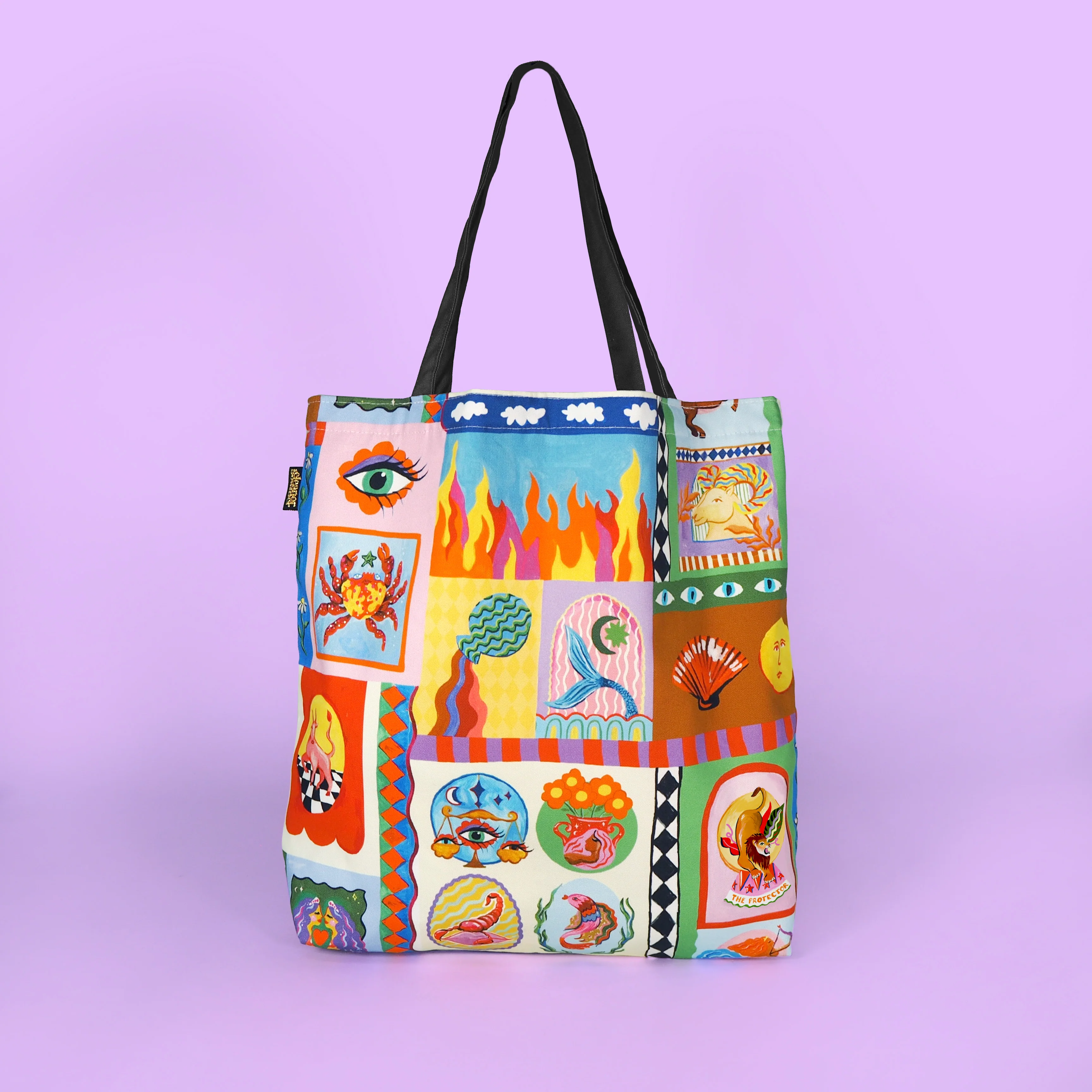 Make a statement with our zodiac tote bag. The patchwork design is hand painted and the canvas material is sturdy enough to hold all of your everyday essentials. It has durable black handles! Perfect for work or play, it's a must for any tote lover. With enough room to fit a laptop, gym gear and more, this bag is your go-to for any occasion. It makes a great gift for someone special or just treat yourself! This bag can be personalised with a Gold Glitter initial.